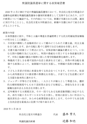 社民党 七尾市と能美市の市議会議員 候補者募集!